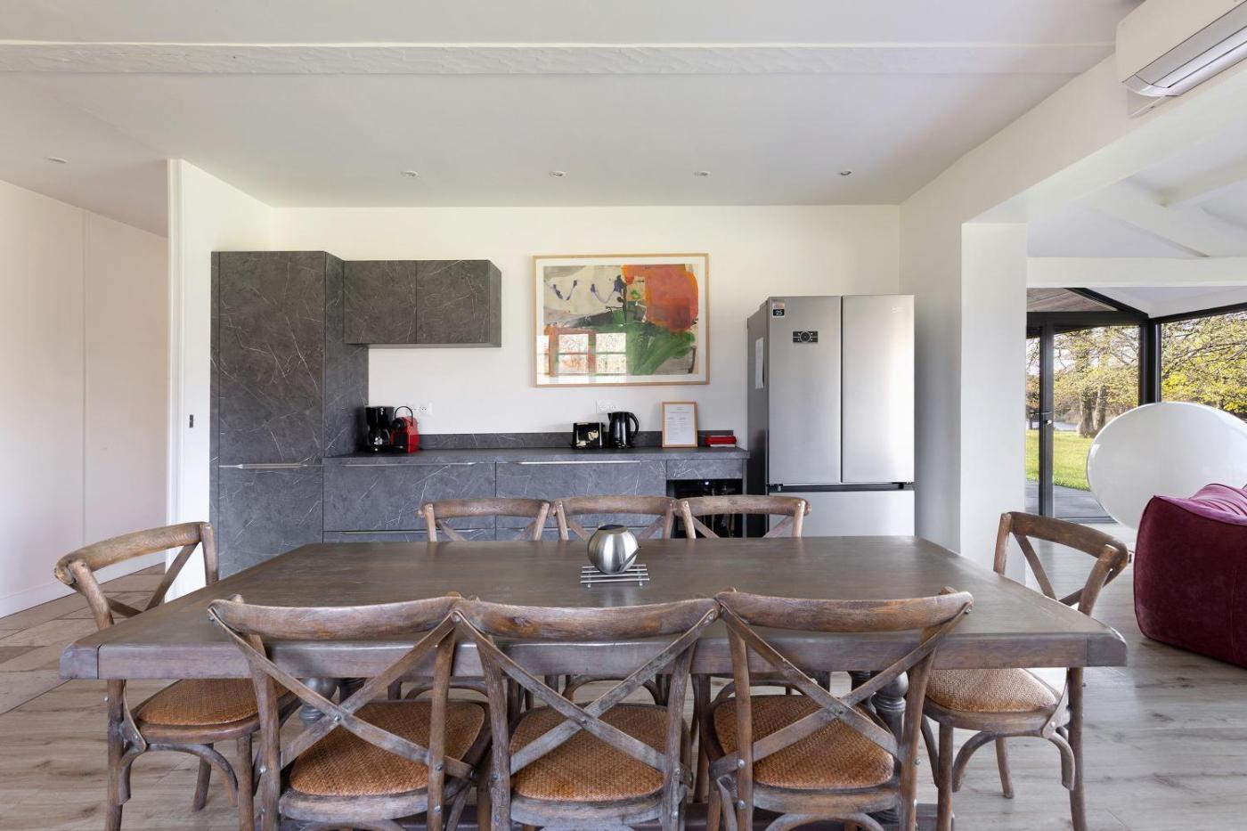 Villa - Vue sur Jardin. This villa provides a fireplace. Featuring a private entrance, this air-conditioned villa comprises a kitchen, 5 bedrooms and 3 bathrooms with a bath and a shower. In the well-equipped kitchen, guests will find a dishwasher, kitchenware, an oven and a microwave. Among the room amenities are a washing machine, a coffee machine, a barbecue as well as a patio and lake views. The unit offers 9 beds.