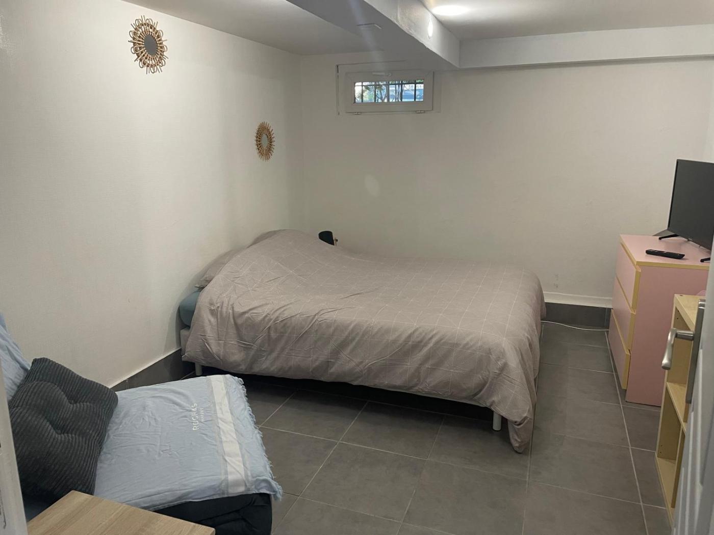 Chambre Double avec Salle de Bains Commune. The well-equipped kitchenette features a stovetop, a refrigerator, a dishwasher and kitchenware. The double room offers a private entrance, a tea and coffee maker, as well as a shared bathroom featuring a shower and a hairdryer. The unit offers 2 beds.