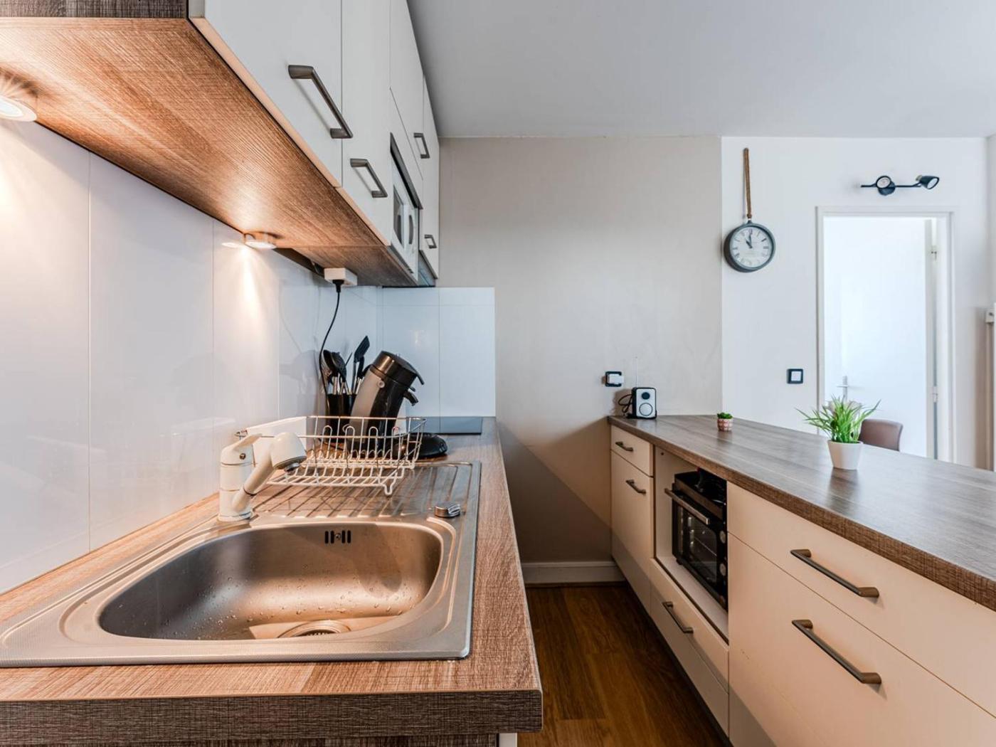Cet appartement se compose de 2 chambres, dun salon, dune cuisine entièrement équipée avec un lave-vaisselle et une machine à café, ainsi que de 1 salle de bains avec une douche. Une télévision est disponible.