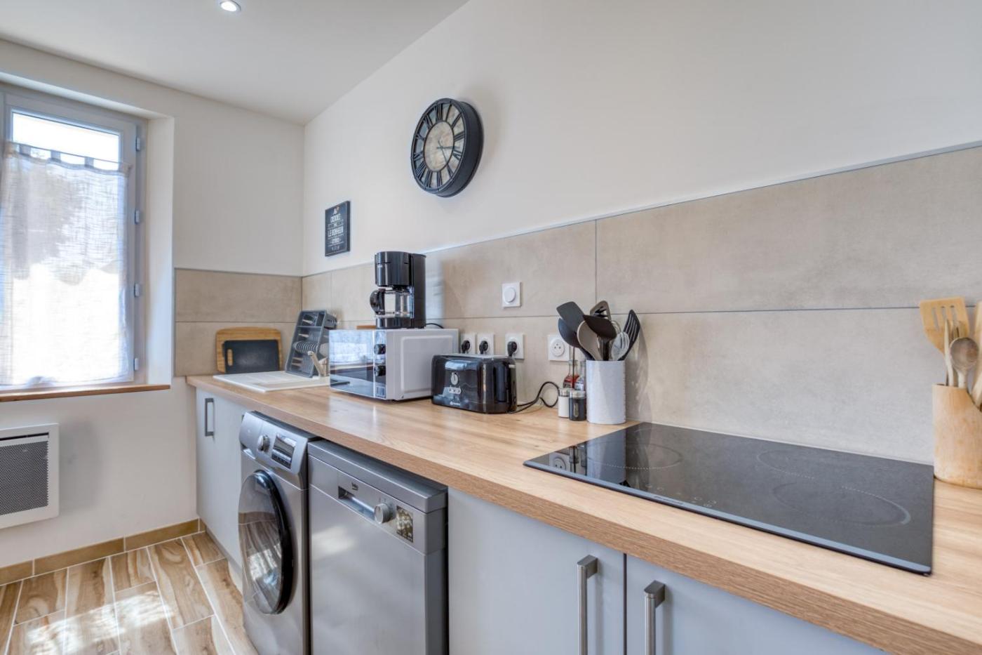 Maison 2 Chambres. The hot tub is the standout feature of this holiday home. Boasting a private entrance, this air-conditioned holiday home features 2 bedrooms and 1 bathroom with a shower. Meals can be prepared in the well-fitted kitchen, which features a dishwasher, kitchenware, a microwave and a toaster. This holiday home has a washing machine, a coffee machine, a TV and a terrace. The unit has 2 beds.