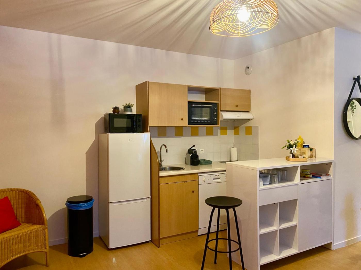 Appartement 1 Chambre. The sauna is the standout feature of this apartment. In the well-fitted kitchen, guests will find a stovetop, a refrigerator, a dishwasher and kitchenware. The apartment features a washing machine, a coffee machine, a seating area, a flat-screen TV with streaming services, as well as garden views. The unit has 2 beds.