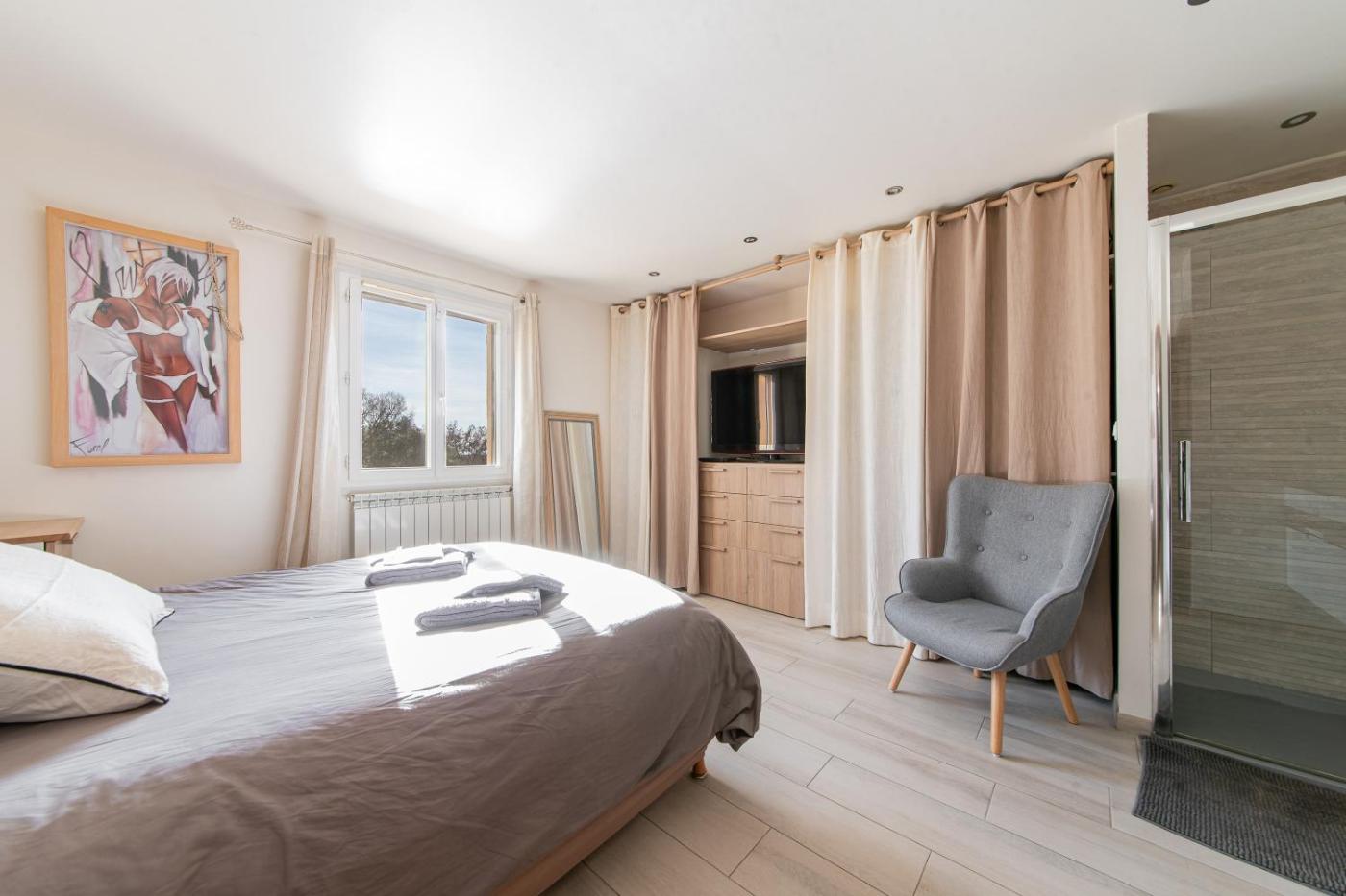 Maison 4 Chambres. The private pool is the special feature of this holiday home. This spacious holiday home comprises 1 living room, 4 separate bedrooms and 3 bathrooms with a shower and a hairdryer. Meals can be prepared in the kitchen, which comes with a refrigerator, a dishwasher, kitchenware and an oven. The air-conditioned holiday home provides a TV with streaming services, a washing machine, a tea and coffee maker, a wardrobe as well as garden views. The unit offers 5 beds and 1 futon.