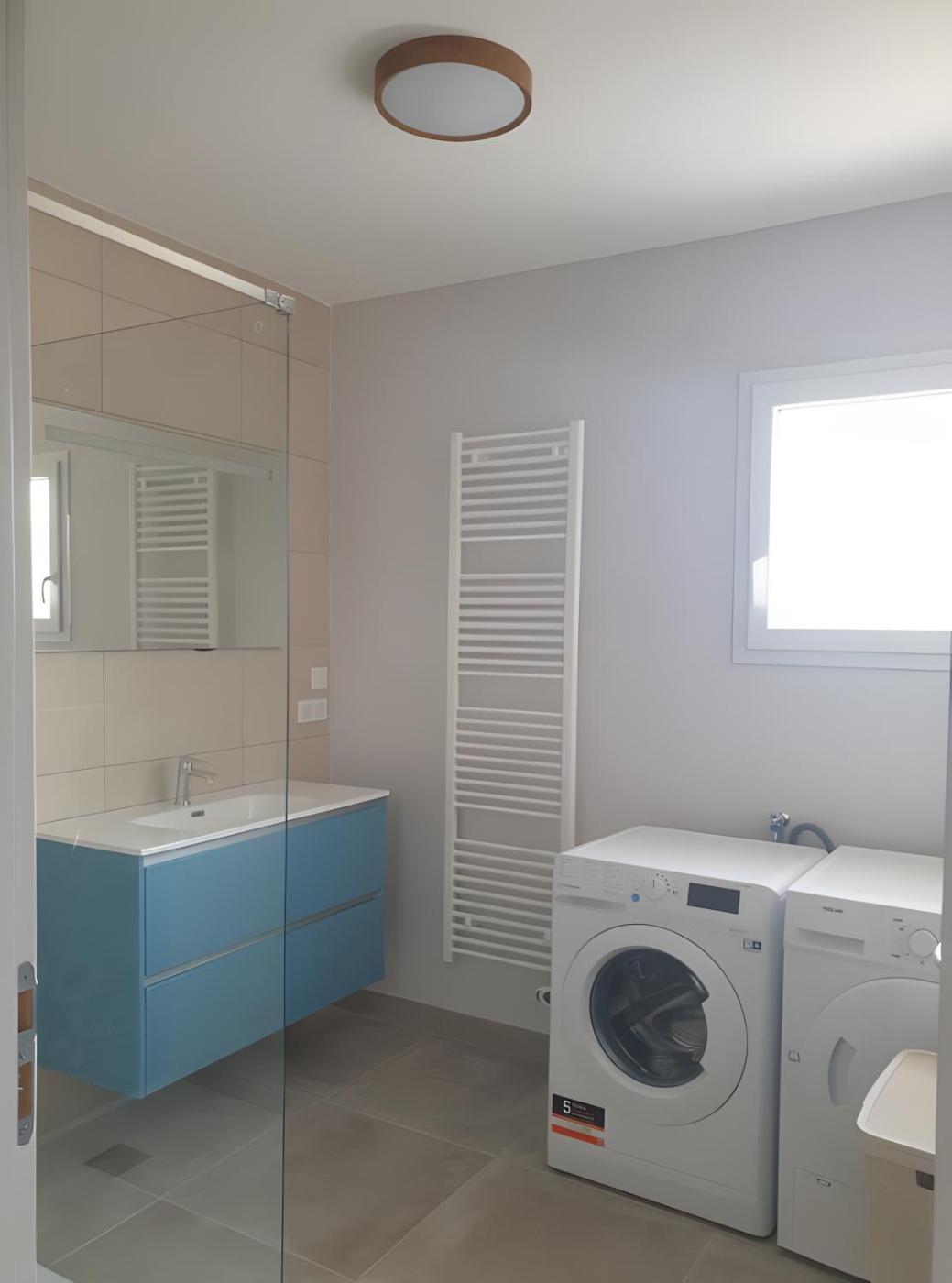 Cette villa comporte 2 chambres, une cuisine avec un lave-vaisselle et un four, ainsi que 1 salle de bains avec une douche, un sèche-cheveux et un lave-linge. Des serviettes et du linge de lit sont à disposition.