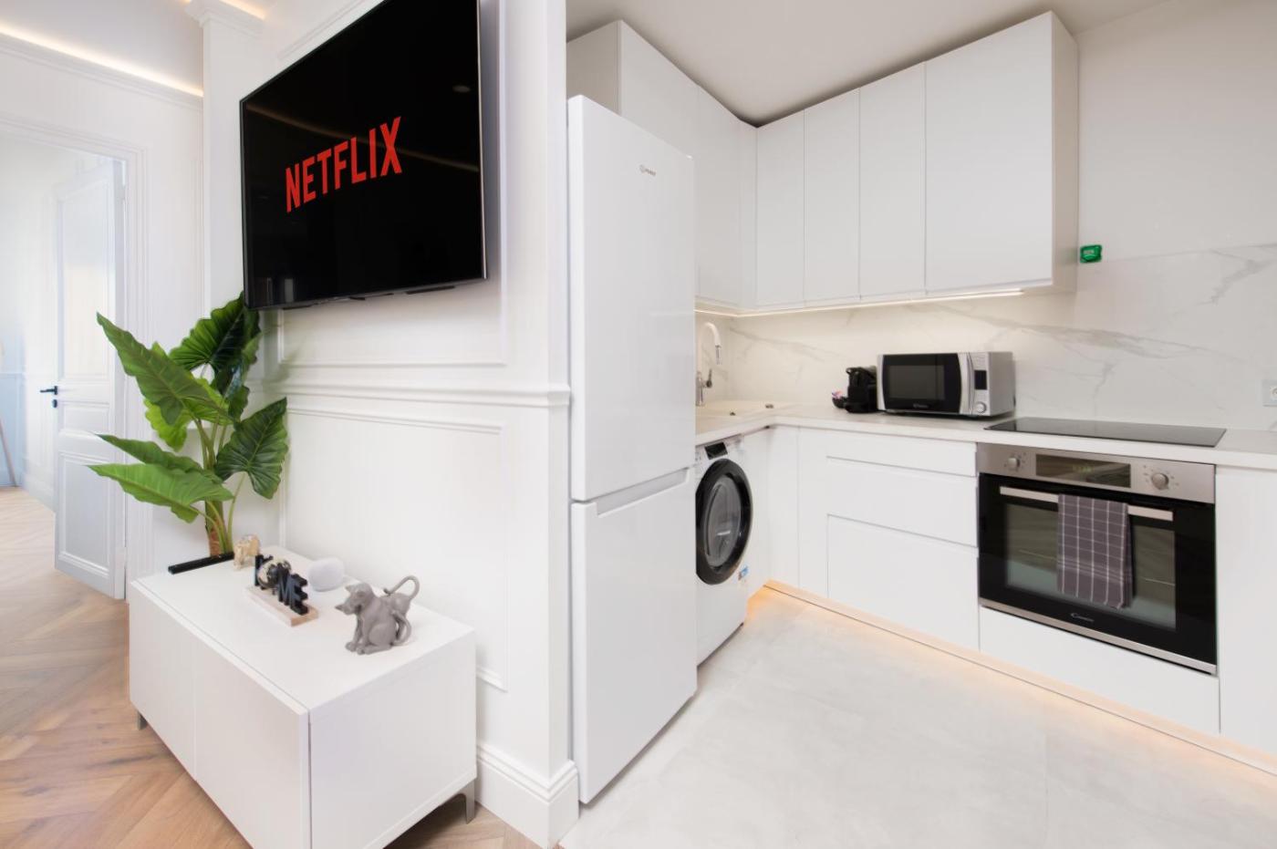Appartement 2 Chambres. The well-equipped kitchen has a stovetop, a refrigerator, an oven and a microwave. This apartment features air conditioning, a washing machine, a flat-screen TV with streaming services and a balcony. The unit offers 3 beds.