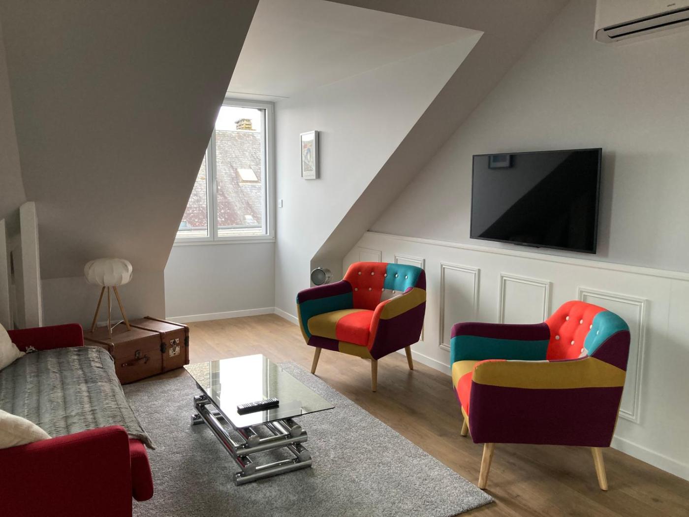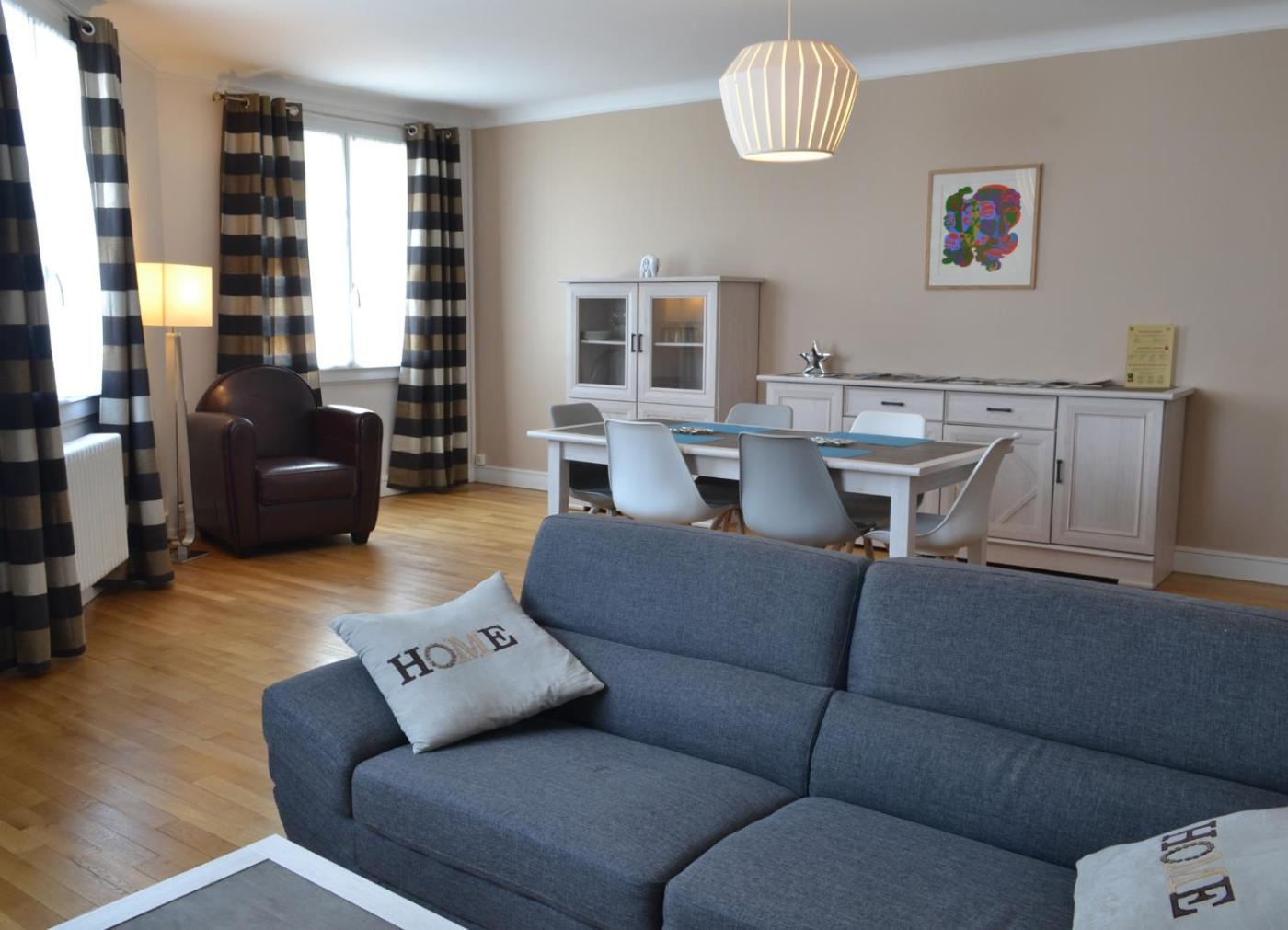 Appartement François 1er - 45 Occupants. Cet appartement spacieux comprend un salon, 2 chambres séparées et une salle de bains avec douche à l’italienne. Des articles de toilette sont fournis gratuitement. La cuisine bien équipée est munie de plaques de cuisson, d’un réfrigérateur, d’un lave-vaisselle et d’ustensiles. Offrant une vue sur la ville, cet appartement dispose d’une entrée privée, d’un plateaubouilloire, d’un lave-linge et d’une télévision par satellite à écran plat. Ce logement comporte 3 lits. ;