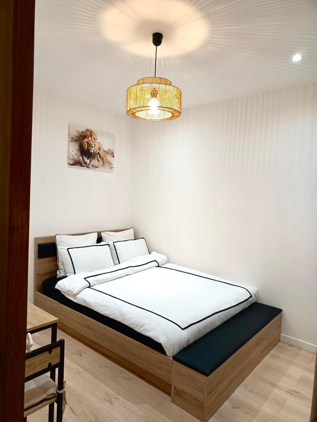 Appartement 1 Chambre. Guests can make meals in the kitchen that has a stovetop, a refrigerator, kitchenware and a microwave. This apartment has a private entrance, soundproof walls, flat-screen TV with streaming services, as well as chocolate for guests. The unit has 1 bed.