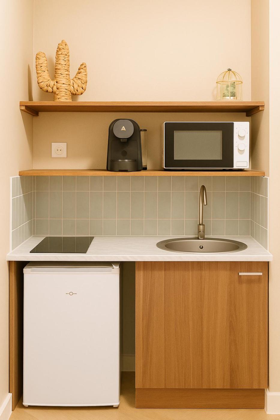 Appartement 1 Chambre. Cet appartement comprend une chambre, une salle de bains et une kitchenette. Vous pourrez conserver vos aliments et préparer vos repas dans la kitchenette de l’appartement. Cet appartement dispose d’une télévision à écran plat. Ce logement comporte 1 lit. ;