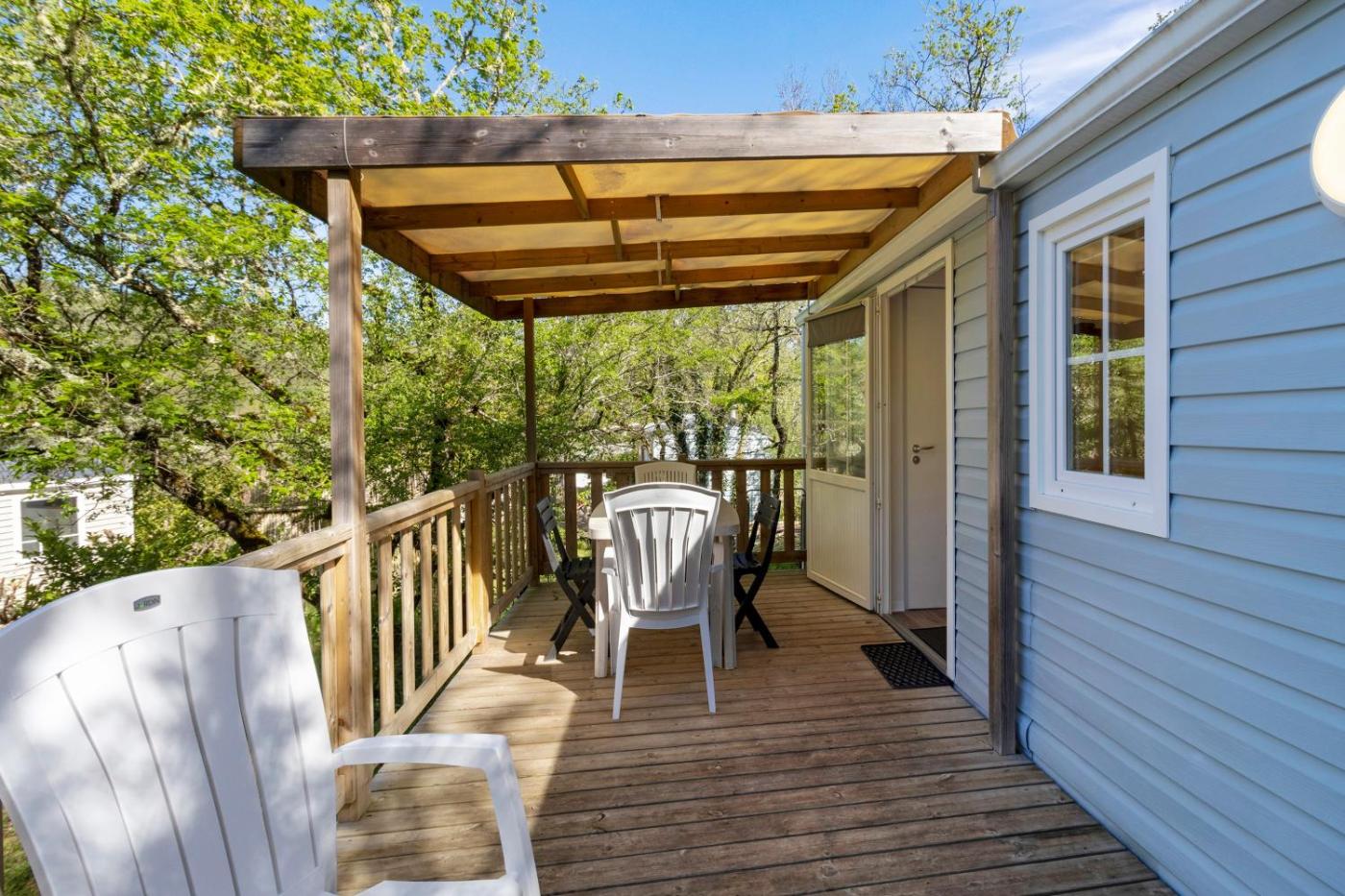 Mobile Home. Featuring a private entrance, this air-conditioned mobile home is comprised of 1 living room, 2 separate bedrooms and 1 bathroom with a shower. Guests can make meals in the kitchen that is fitted with kitchenware, a microwave and a toaster. Boasting a terrace with garden views, this mobile home also offers a coffee machine and a TV. The unit offers 4 beds.
