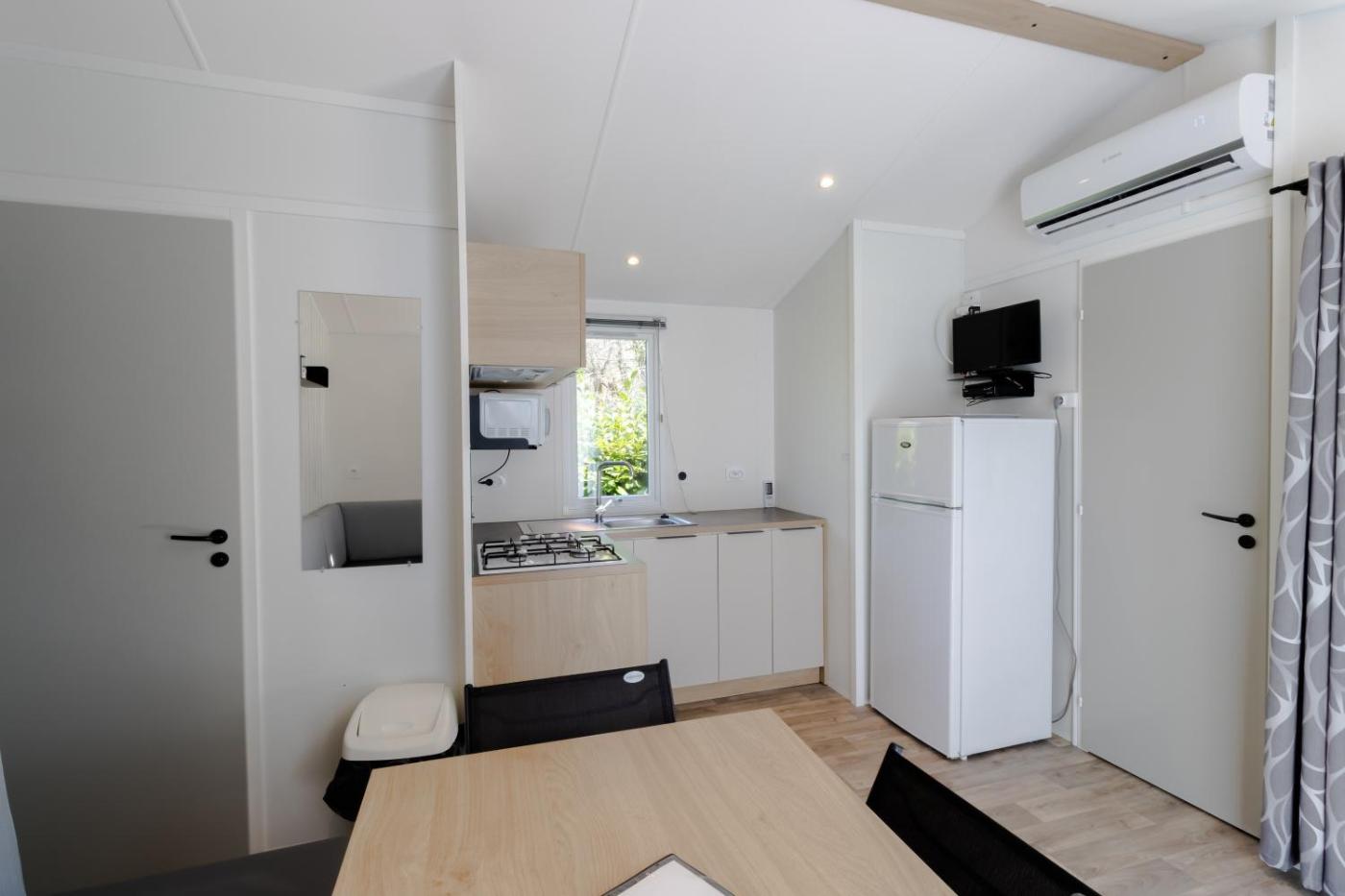 Mobile Home. Featuring a private entrance, this air-conditioned mobile home consists of 1 living room, 3 separate bedrooms and 1 bathroom with a shower. The well-fitted kitchen features kitchenware, a microwave and a toaster. Boasting a terrace with garden views, this mobile home also provides a coffee machine and a TV. The unit offers 6 beds.