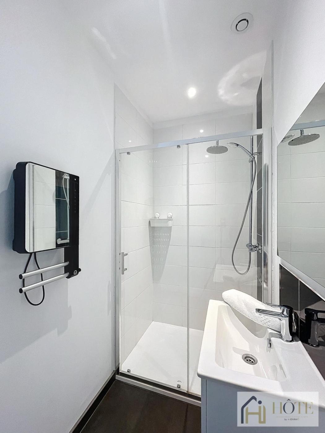 Appartement 1 Chambre. Guests can make meals in the kitchen that comes with a stovetop, a refrigerator, kitchenware and an oven. The apartment provides a washing machine, a private entrance, a tea and coffee maker, a wardrobe and a flat-screen TV. The unit offers 4 beds.