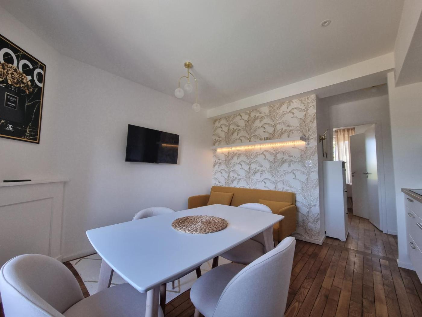 Appartement 1 Chambre. Featuring a private entrance, this apartment comprises 1 living room, 1 separate bedroom and 1 bathroom with a shower and a hairdryer. Meals can be prepared in the kitchen, which comes with a stovetop, a refrigerator, kitchenware and an oven. This apartment features a washing machine, flat-screen TV with streaming services, ancourtyard view, as well as chocolate for guests. The unit offers 1 bed.