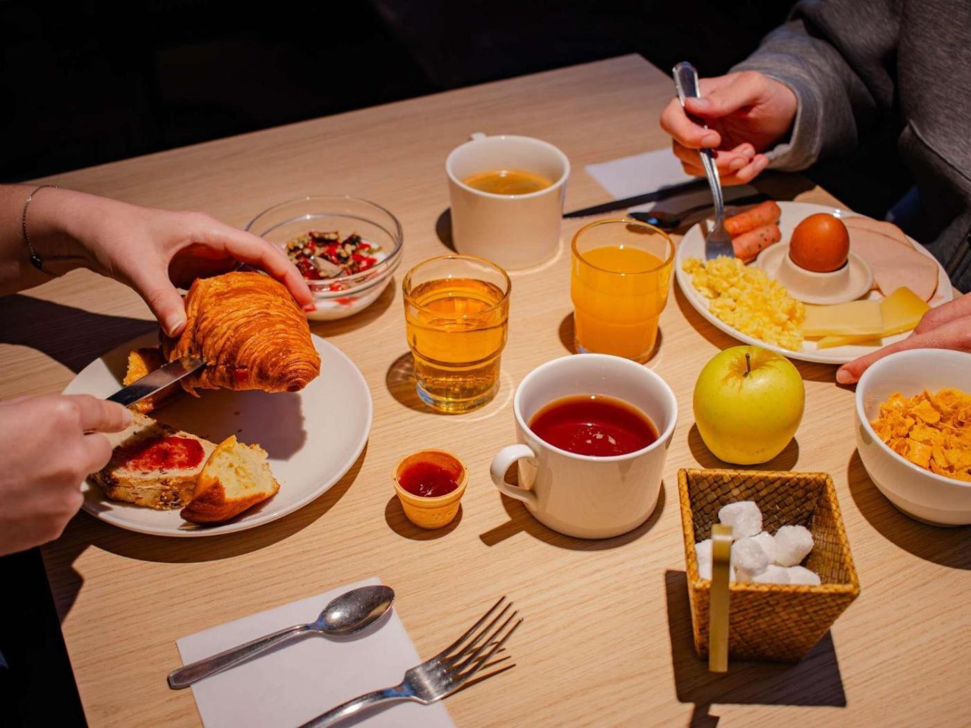 Un petit-déjeuner buffet, composé de plats sucrés et salés, comme des œufs, de la salade de fruits, des yaourts et des jus, est servi chaque matin. Vous profiterez aussi de viennoiseries préparées sur place, de madeleines fraîches, dune boisson chaude et dun fruit à emporter. Un petit-déjeuner plus léger est servi à partir de 4h00.