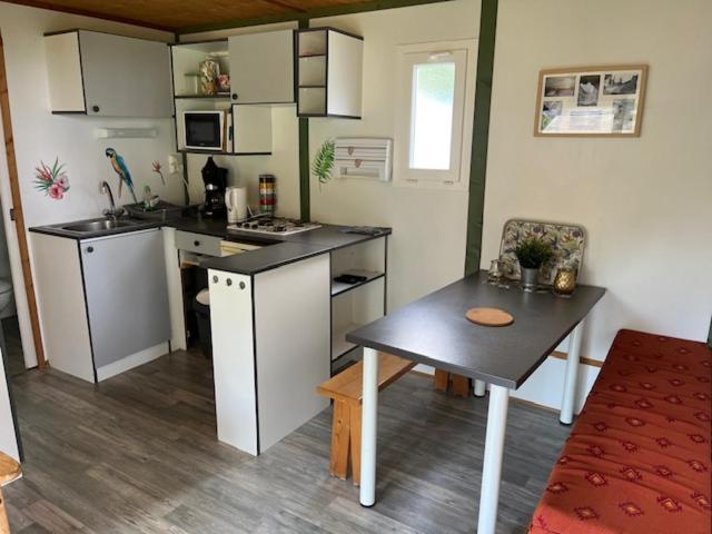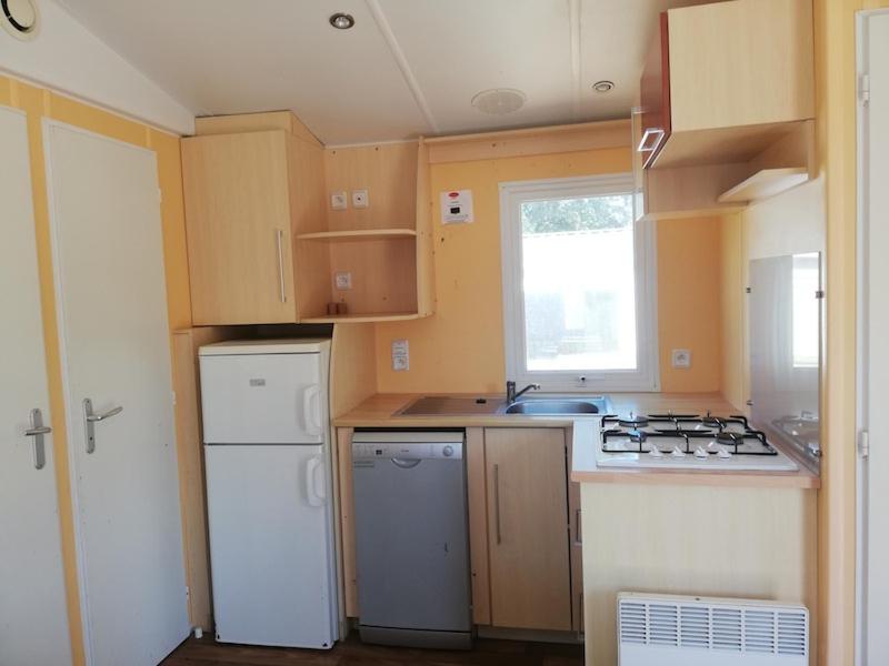 Mobile Home. Ce mobile home comprend un salon, 2 chambres séparées ainsi qu’une salle de bains avec douche. Vous pourrez préparer vos repas dans la cuisine équipée de plaques de cuisson, d’un réfrigérateur, d’un micro-ondes et d’ustensiles. Doté d’une terrasse donnant sur le jardin, ce mobile home dispose de coins salon et repas, ainsi que d’une machine à café. Ce logement comporte 3 lits. ;