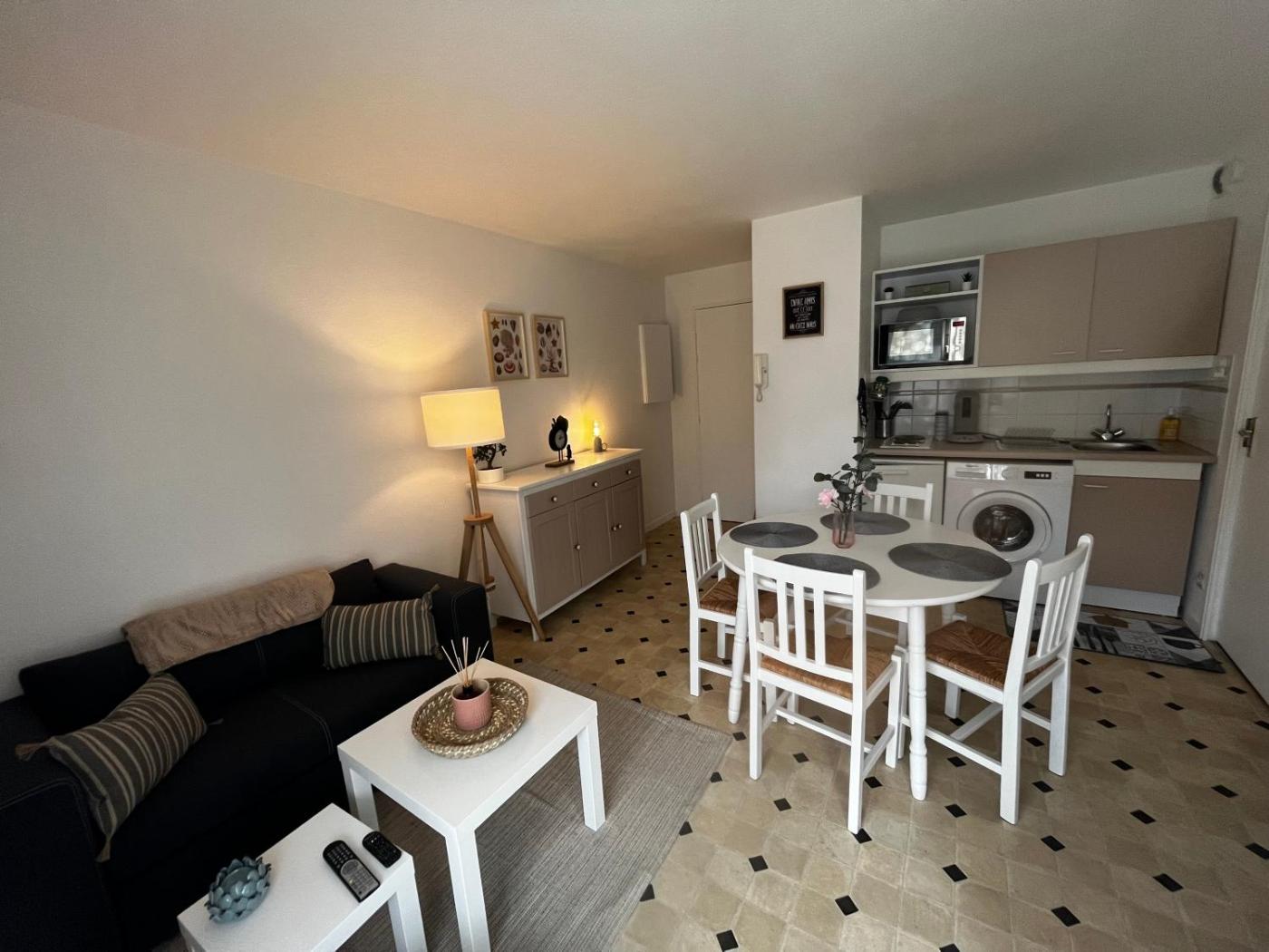 Appartement 1 Chambre. Guests will have a special experience as this apartment features a private pool. This apartment is comprised of 1 living room, 1 separate bedroom and 1 bathroom with a bath and a hairdryer. In the well-equipped kitchen, guests will find a stovetop, a refrigerator, kitchenware and an oven. Featuring a terrace with garden views, this apartment also offers a washing machine and a flat-screen TV with cable channels. The unit offers 2 beds.