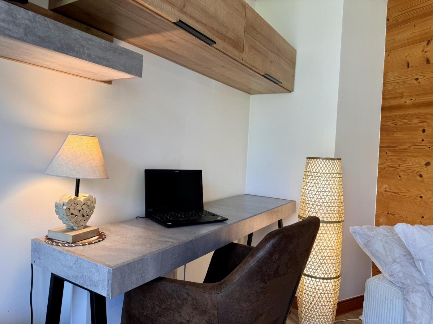 L’établissement Studio La Baie des Voiles vue lac et montagne possède une terrasse bien exposée, ainsi quune plage privée.