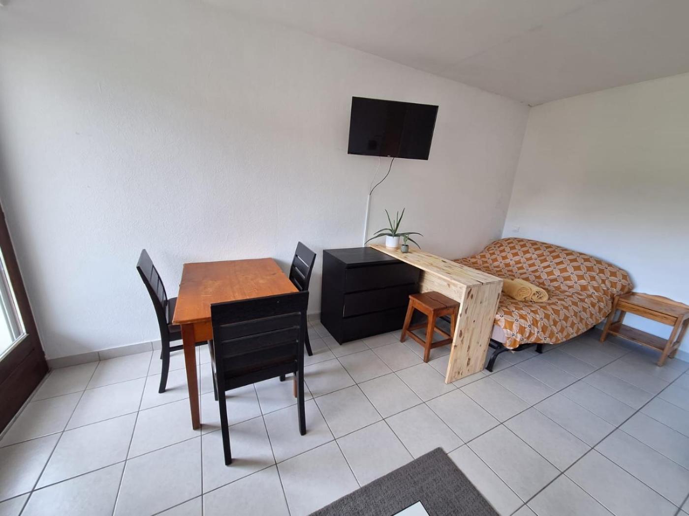 Studio avec Canapé-Lit. Guests can make meals in the kitchen that features kitchenware, an oven, a microwave and a toaster. The studio features a washing machine, a private entrance, a balcony with mountain views as well as a private bathroom boasting a shower. The unit has 2 beds.