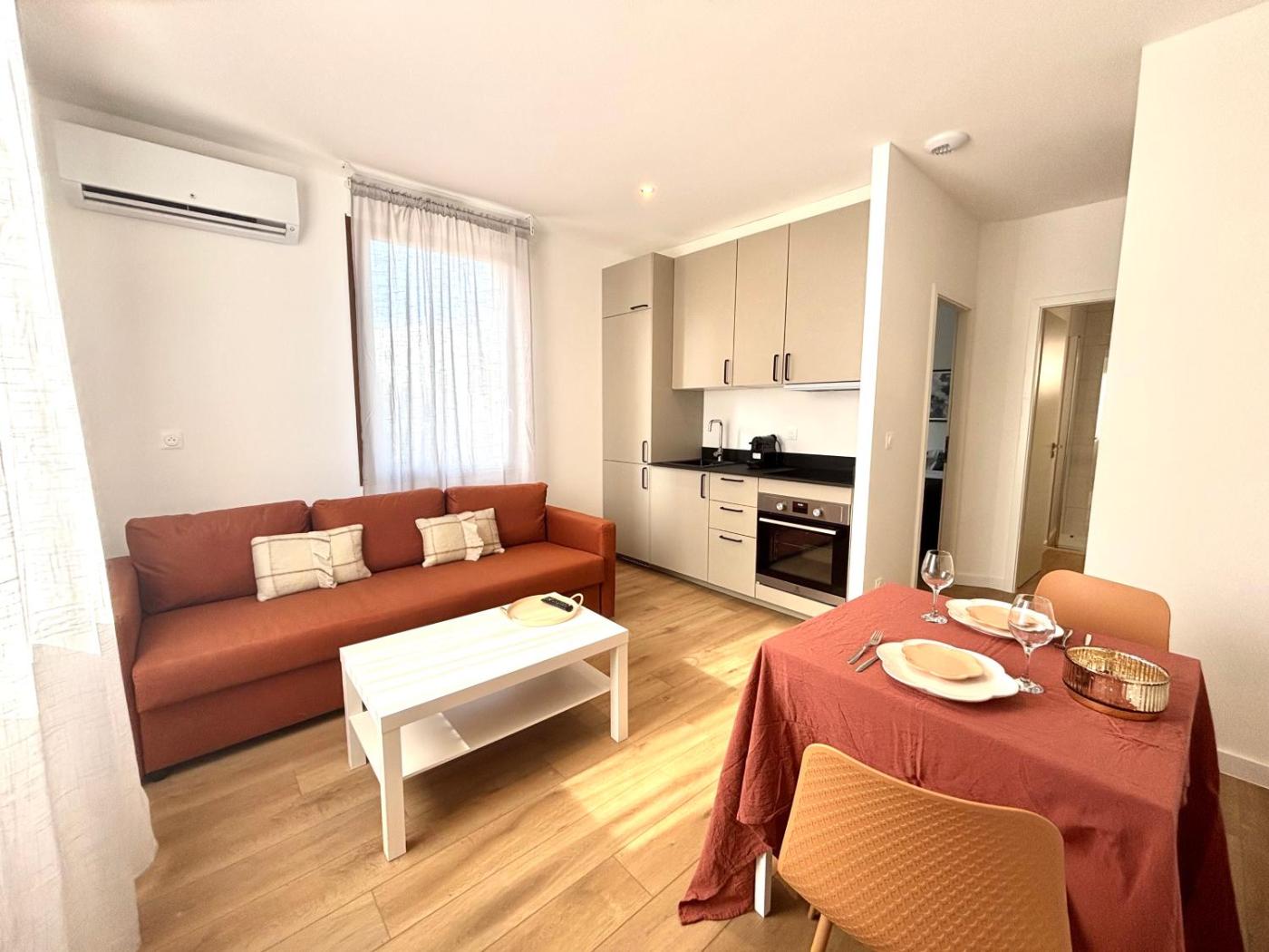 Appartement 1 Chambre. Cet appartement climatisé comprend une cuisine, 1 chambre et une salle de bains. Vous pourrez préparer vos repas et conserver vos aliments dans la cuisine de l’appartement. Vous disposerez dun lave-linge, du chauffage et dune télévision à écran plat. Ce logement comporte 2 lits.