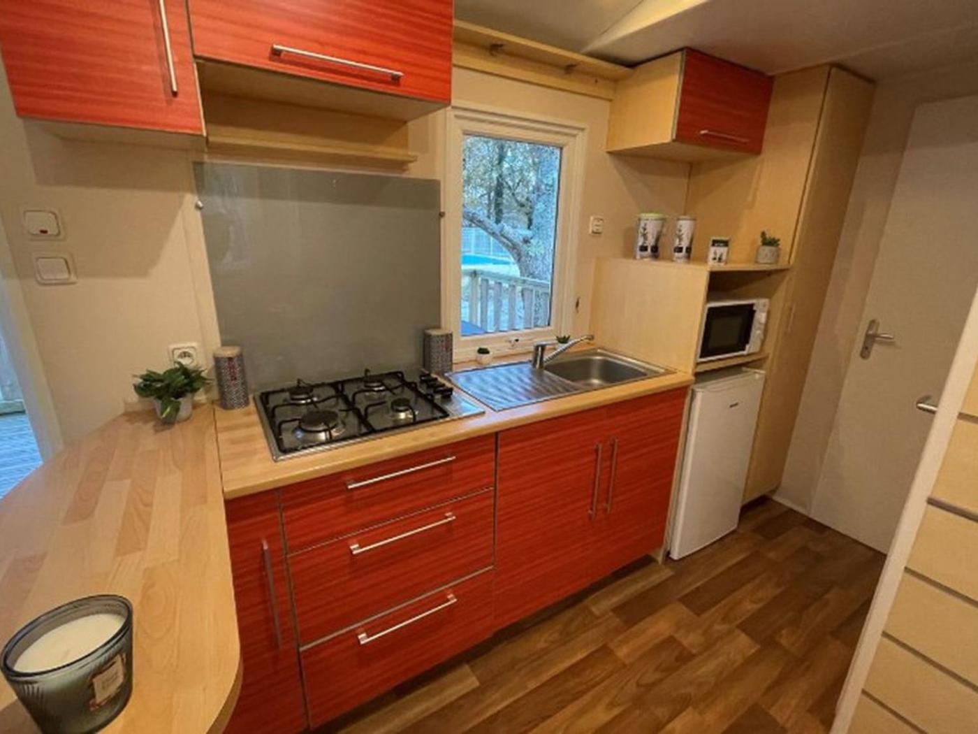 Mobile Home. Featuring 2 bedrooms and 1 bathroom, this mobile home offers a living room and terraceyou can relax. Meals can be prepared in the well-fitted kitchen, which is fitted with a refrigerator, kitchenware and a microwave. The mobile home offers a private entrance, a coffee machine and a dining area.