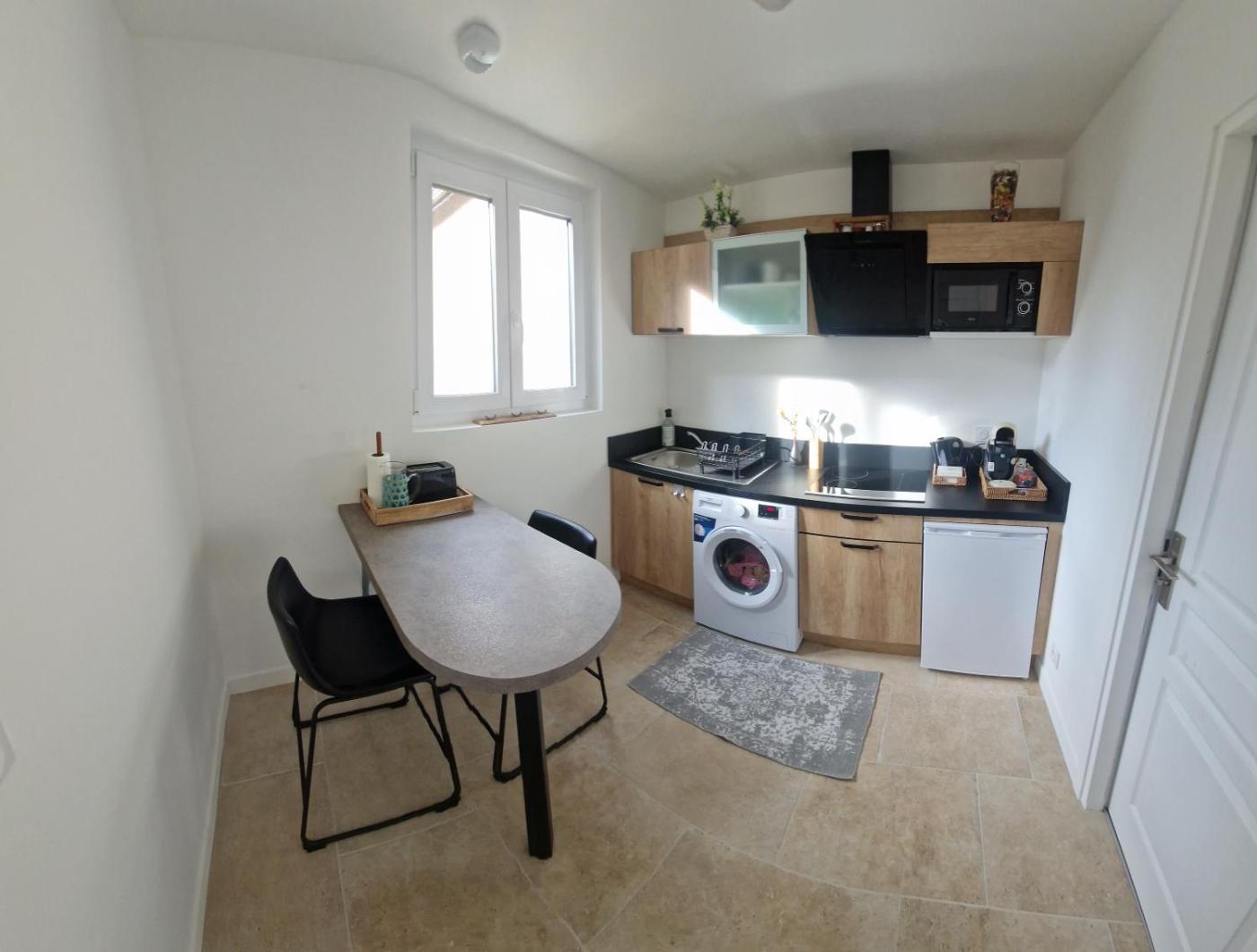 Appartement 1 Chambre. Boasting a private entrance, this apartment features a kitchen, 1 bedroom and 1 bathroom with a walk-in shower and a hairdryer. Meals can be prepared in the kitchen, which has a stovetop, a refrigerator, kitchenware and a microwave. The unit has a washing machine, garden views, a terrace and chocolate is available for guests. The unit has 1 bed.