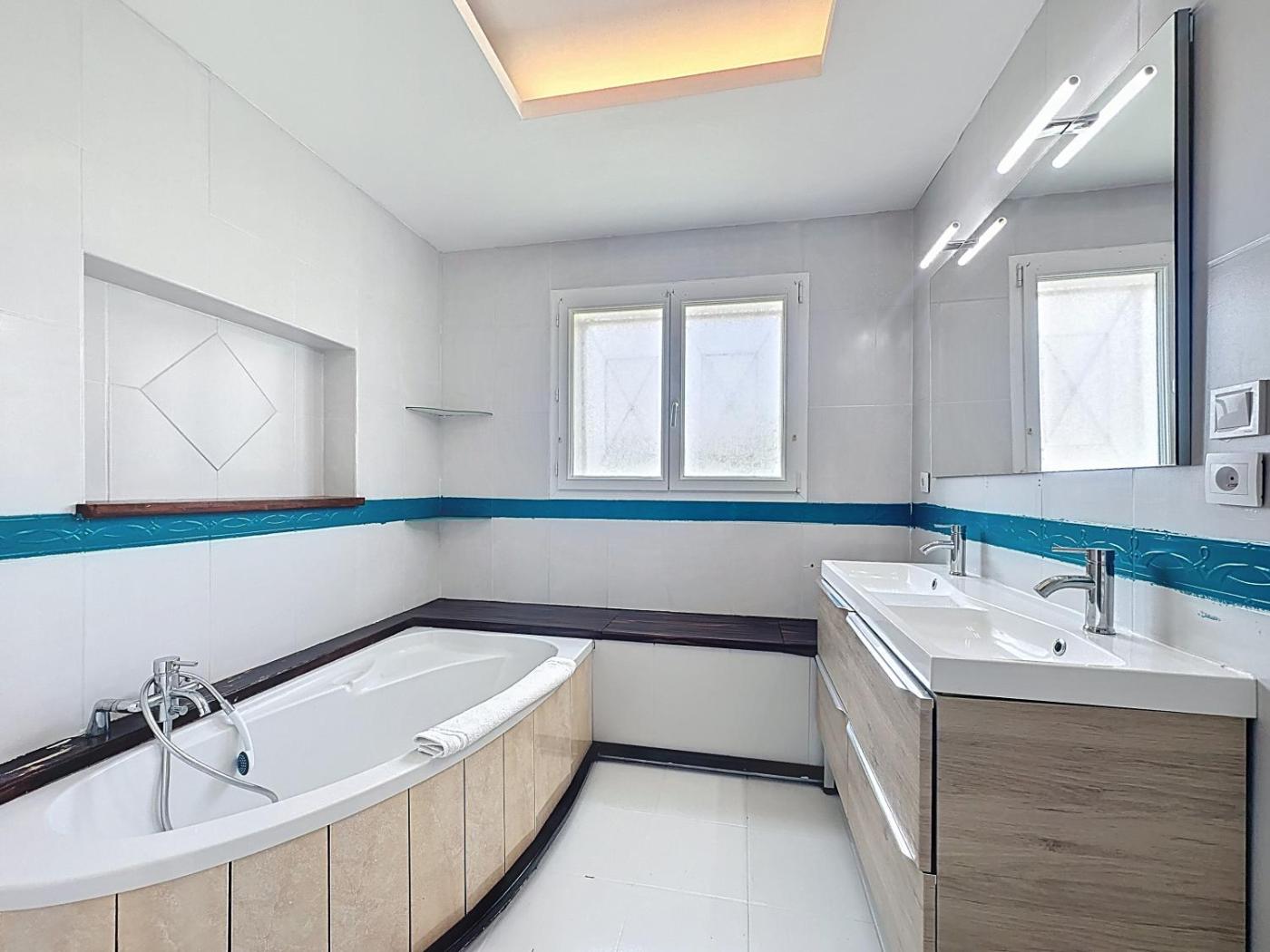 Cette maison de vacances avec climatisation se compose de 5 chambres, dun salon, dune cuisine entièrement équipée avec un réfrigérateur et une machine à café, ainsi que de 2 salles de bains avec une douche et une baignoire. Des serviettes et du linge de lit sont à votre disposition.
