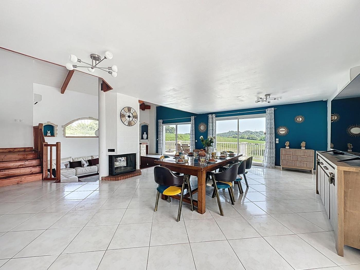 Maison 5 Chambres. The fireplace is a top feature of this holiday home. This spacious holiday home includes 1 living room, 5 separate bedrooms and 2 bathrooms with a bath and a shower. Guests will find a stovetop, a refrigerator, a dishwasher and kitchenware in the well-equipped kitchen. The holiday home also features a barbecue. The air-conditioned holiday home offers a flat-screen TV, a washing machine, a tea and coffee maker, a seating area as well as garden views. The unit has 7 beds.