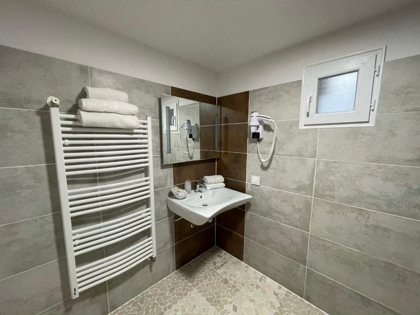Chambre Double. Dotée dune télévision à écran plat, cette chambre comprend une salle de bains privative avec un sèche-cheveux, des articles de toilette gratuits et une douche. ;