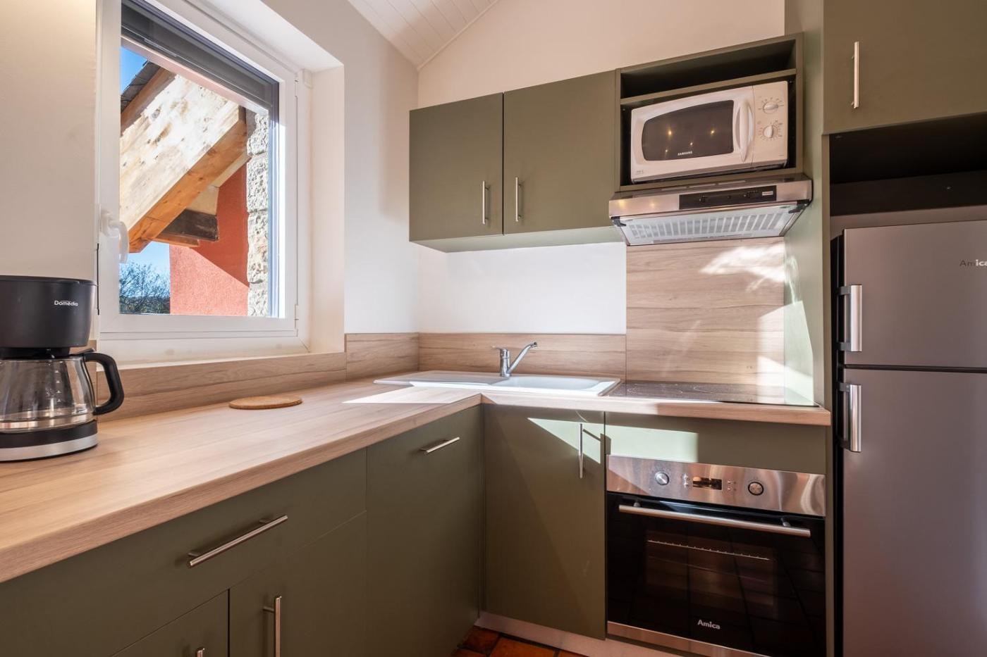 Maison 1 Chambre. Cette maison de vacances dispose dune terrasse, dune cheminée et dun coin salon. L’hébergement comprend une kitchenette équipée et une salle de bains privative avec baignoire ou douche. Le logement offre une vue sur les montagnes et la piscine. ;