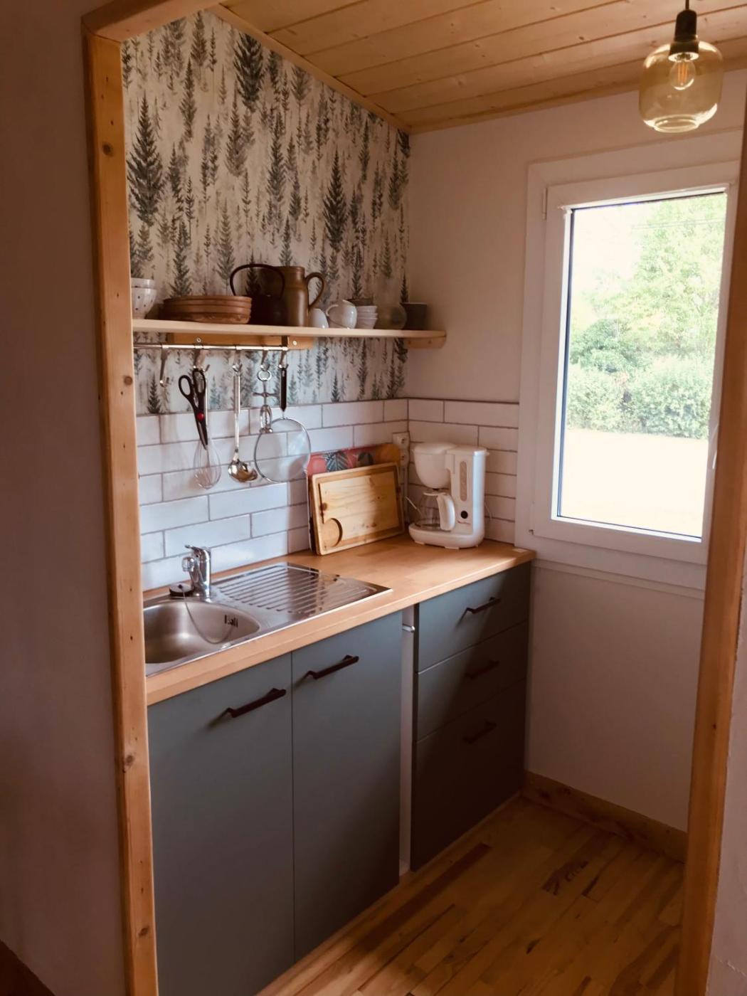Chalet 1 Chambre. Boasting a private entrance, this chalet features a kitchen, 1 bedroom and 1 bathroom with a walk-in shower and a hairdryer. Guests will find a stovetop, a refrigerator, kitchenware and an oven in the fully equipped kitchen. The chalet also comes with a barbecue. The chalet has a washing machine, a coffee machine, a dining area as well as a terrace with garden views. The unit has 1 bed.
