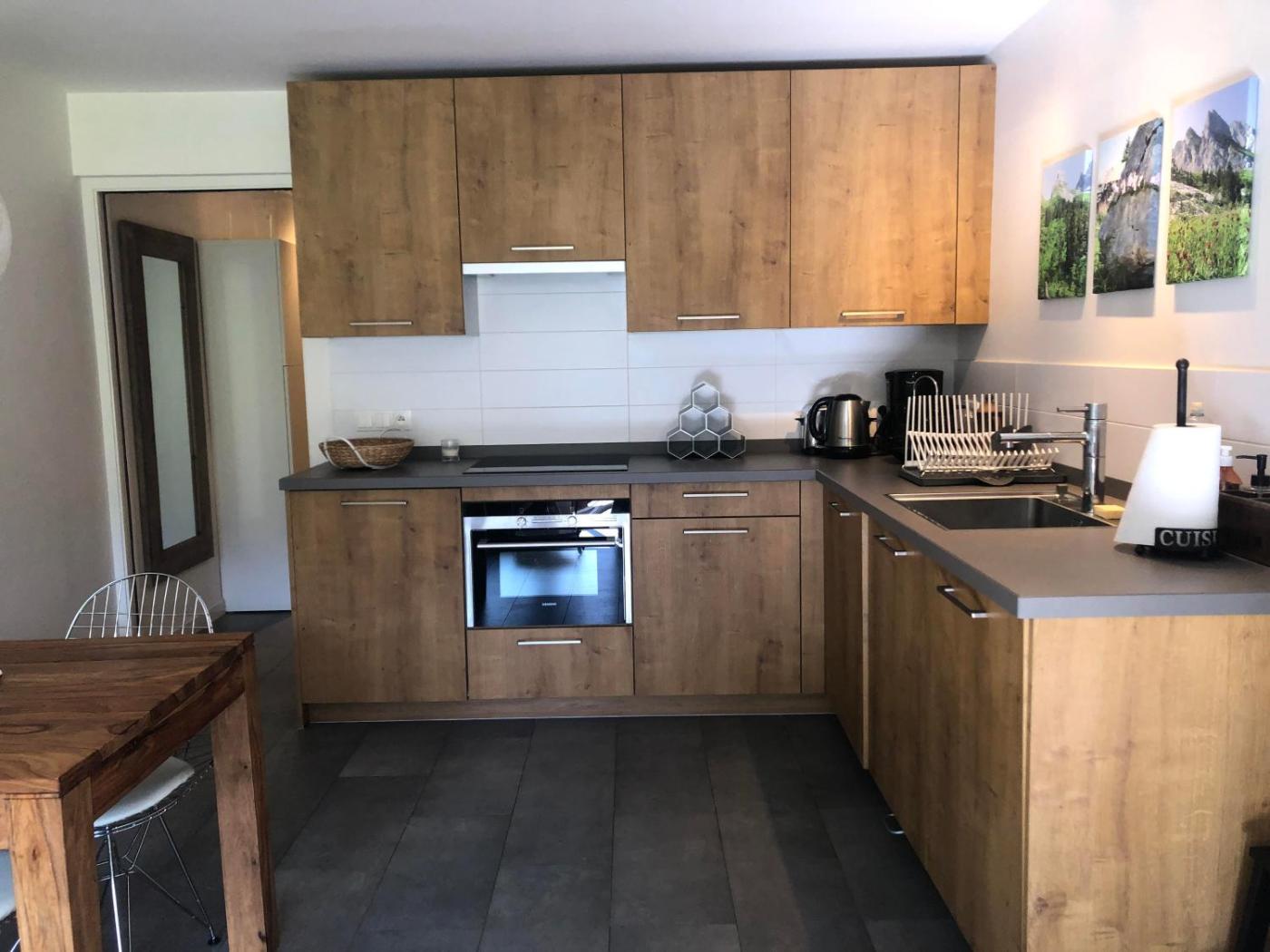 Appartement Confort. Guests can make meals in the kitchen that has a refrigerator, a dishwasher, a microwave and an electric kettle. This apartment has a washing machine, tumble dryer and a TV.