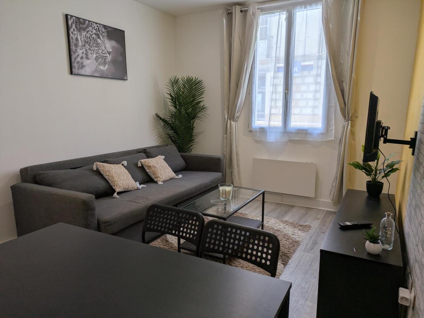 Appartement 1 Chambre. Boasting a private entrance, this apartment comes with 1 living room, 1 separate bedroom and 1 bathroom with a walk-in shower. In the well-equipped kitchen, guests will find a stovetop, a refrigerator, kitchenware and an oven. The apartment has carpeted floors, a seating area with a flat-screen TV with cable channels, a washing machine, a coffee machine, as well as a dining area. The unit has 2 beds.