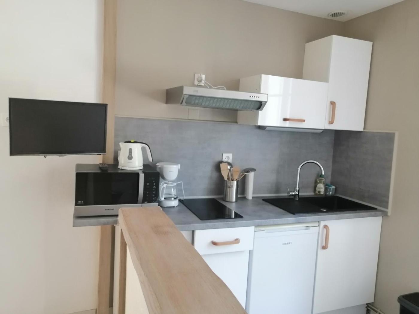 Appartement - Rez-de-Chaussée. Featuring a private entrance, this apartment consists of 1 living room, 1 separate bedroom and 1 bathroom with a bath or a shower. Guests can make meals in the kitchen that is equipped with a stovetop, a refrigerator, kitchenware and a microwave. Boasting a terrace with garden views, this apartment also provides a coffee machine and a flat-screen TV with satellite channels. The unit offers 2 beds.