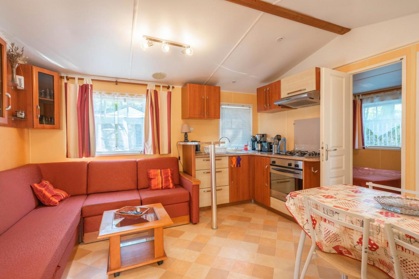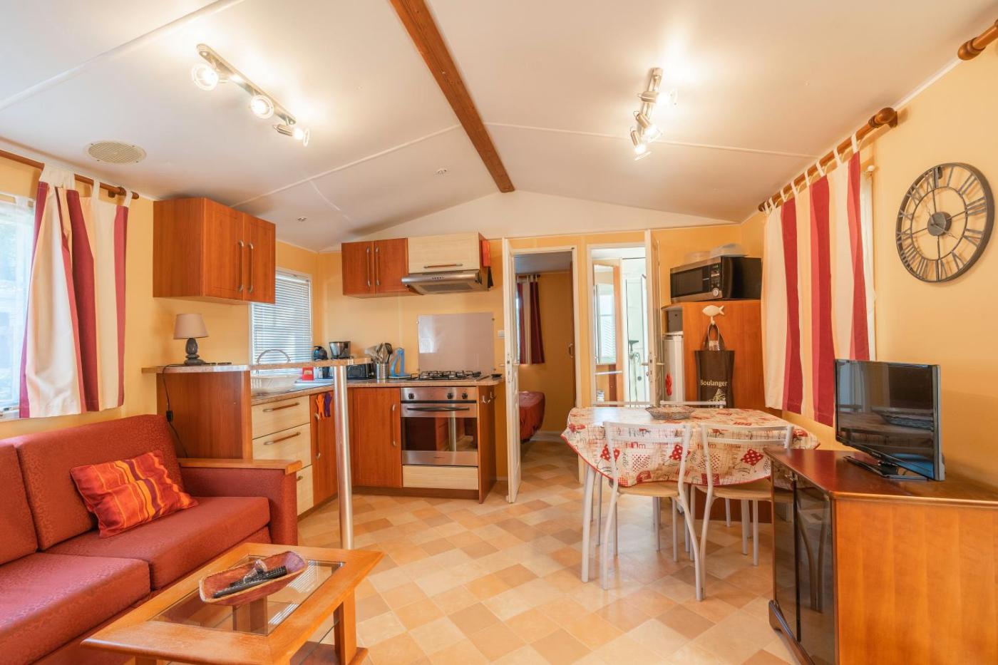 Mobile Home. Boasting a private entrance, this mobile home also includes 3 separate bedrooms and 1 bathroom with a shower. The mobile homes kitchen, which has kitchenware and a microwave, is available for cooking and storing food. Featuring a patio, this mobile home also offers a coffee machine, a barbecue and a TV. The unit has 4 beds.