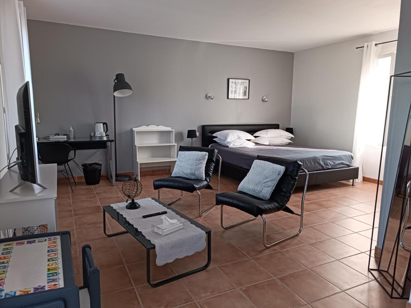 Chambre Lit King-Size - Vue sur Jardin. The pool with a view and hot tub are the standout features of this double room. The spacious double room provides air conditioning, a private entrance, a terrace with garden views as well as a private bathroom featuring a shower. The unit offers 1 bed. ;
