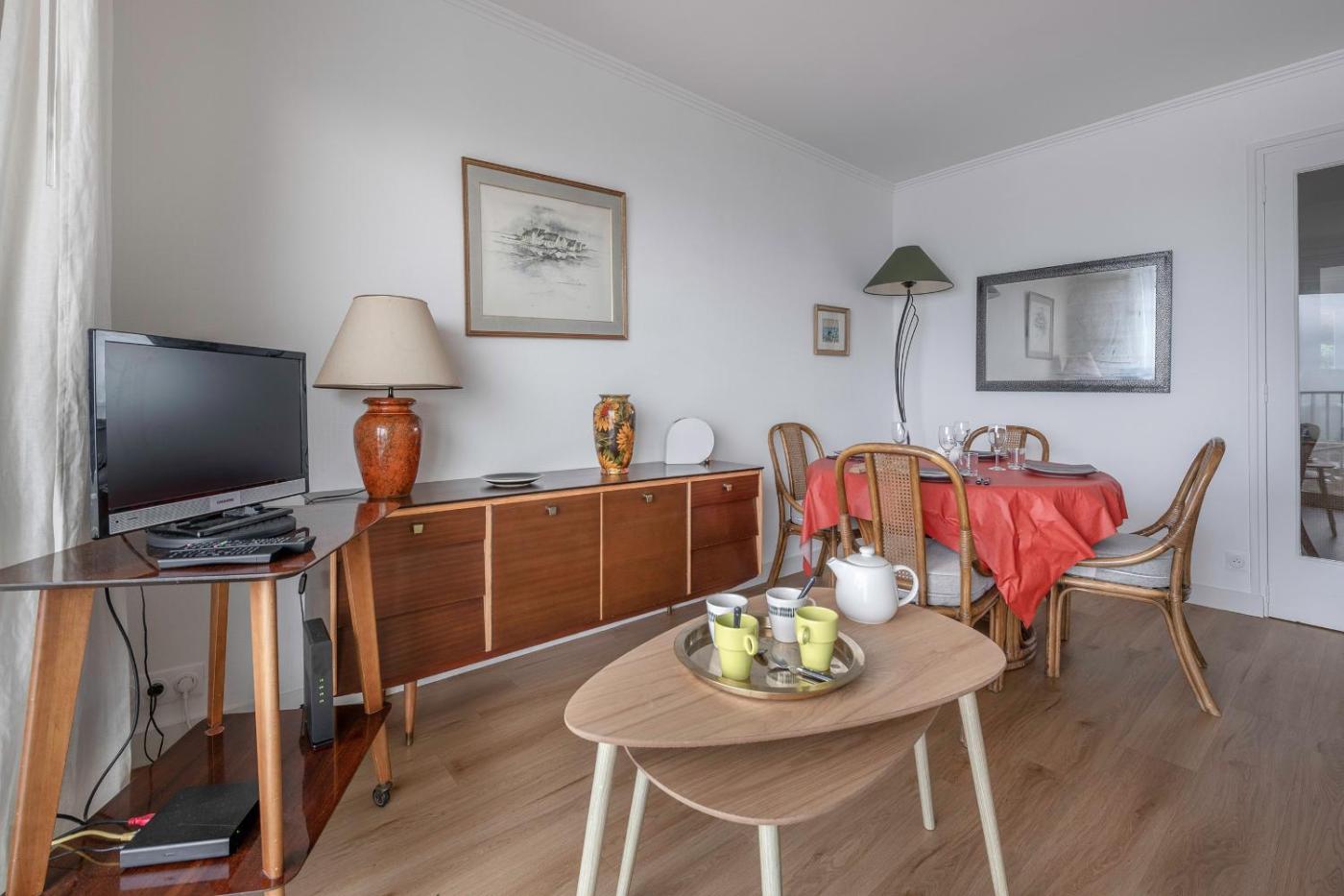 Appartement. This apartment includes 1 bedroom, a kitchen and 1 bathroom with a shower and a hairdryer. In the kitchen, guests will find a refrigerator, a dishwasher, kitchenware and an oven. Boasting a balcony with sea views, this apartment also offers a washing machine and a TV. The unit has 1 bed.