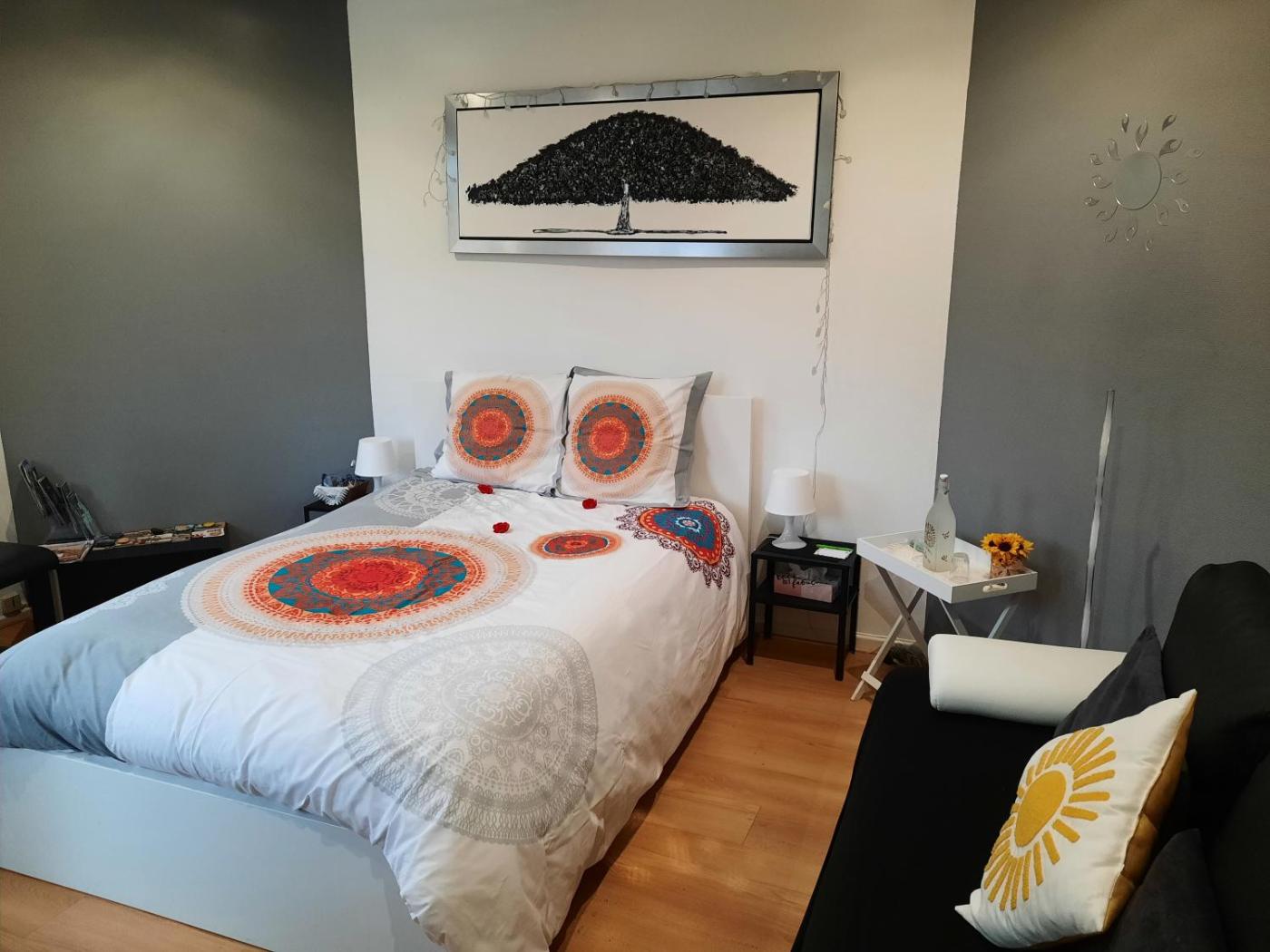 Appartement 1 Chambre. This apartment includes 1 living room, 1 separate bedroom and 1 bathroom with a shower and a hairdryer. Guests can make meals in the kitchen that is fitted with a stovetop, a refrigerator, kitchenware and an oven. The apartment offers a minibar, a tea and coffee maker, a seating area, a flat-screen TV with cable channels, as well as garden views. The unit has 2 beds.