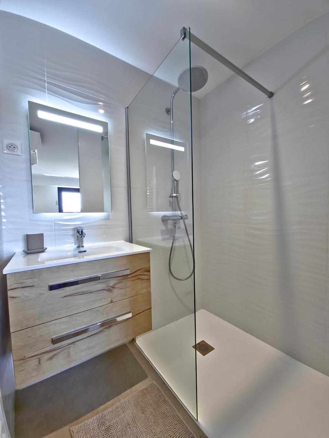 Appartement en Duplex. Boasting 3 bedrooms, this spacious apartment has 2 bathrooms with a walk-in shower, a seating area and terraceyou can relax. The apartments kitchen is available for cooking and storing food. The air-conditioned apartment features a flat-screen TV, a washing machine, a private entrance, a wardrobe as well as sea views. The unit offers 3 beds.