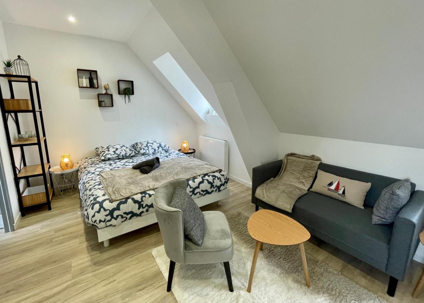 Appartement 1 Chambre. This apartment comes with a kitchen, a seating area, 1 separate bedroom and 1 bathroom with a shower and a hairdryer. Guests can make meals in the kitchen that features a stovetop, a dishwasher, kitchenware and a microwave. The apartment features a coffee machine, a sofa, parquet floors, heating and a flat-screen TV. The unit has 1 bed.