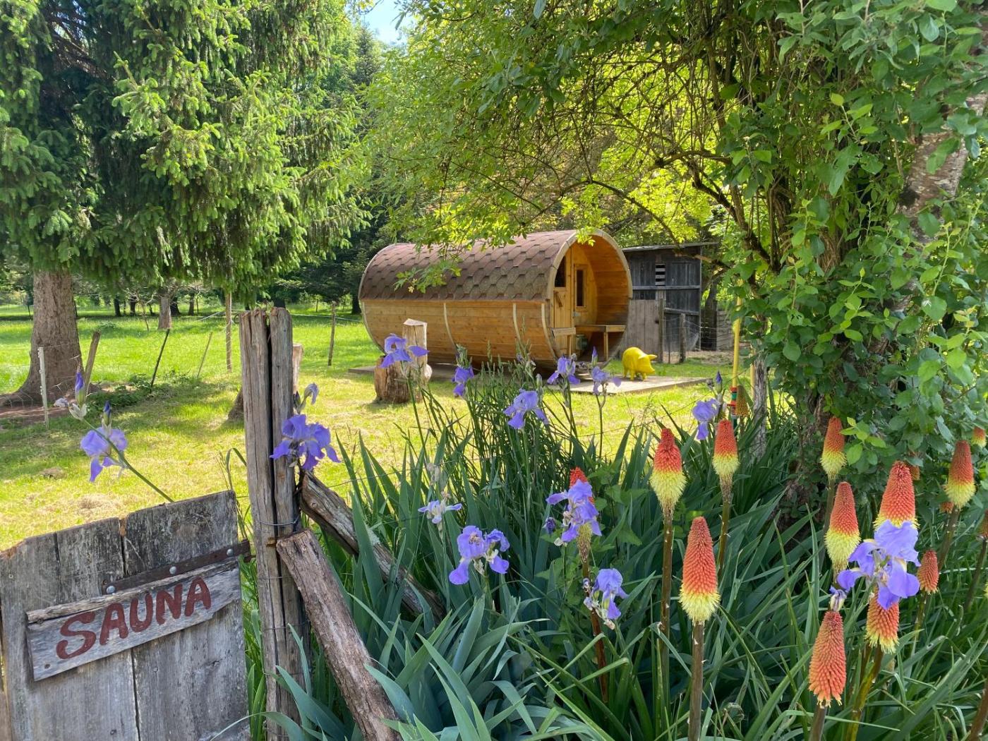 Tente. Guests will find a stovetop, a refrigerator, kitchenware and a microwave in the fully equipped kitchen. The tent also has a barbecue. The tent features a coffee machine, a seating area, a dining area as well as a terrace with garden views. The unit offers 3 beds. ;