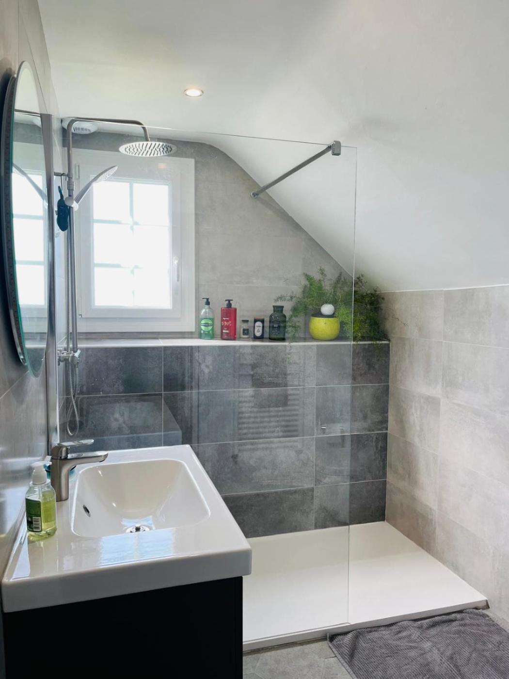 Chambre Quadruple avec Salle de Bains Privative. The quadruple room offers a sofa, parquet floors, as well as a private bathroom boasting a shower and a hairdryer. The spacious quadruple room features a tea and coffee maker, a seating area, a dining area, a wardrobe, as well as a flat-screen TV with streaming services. The unit has 2 beds.