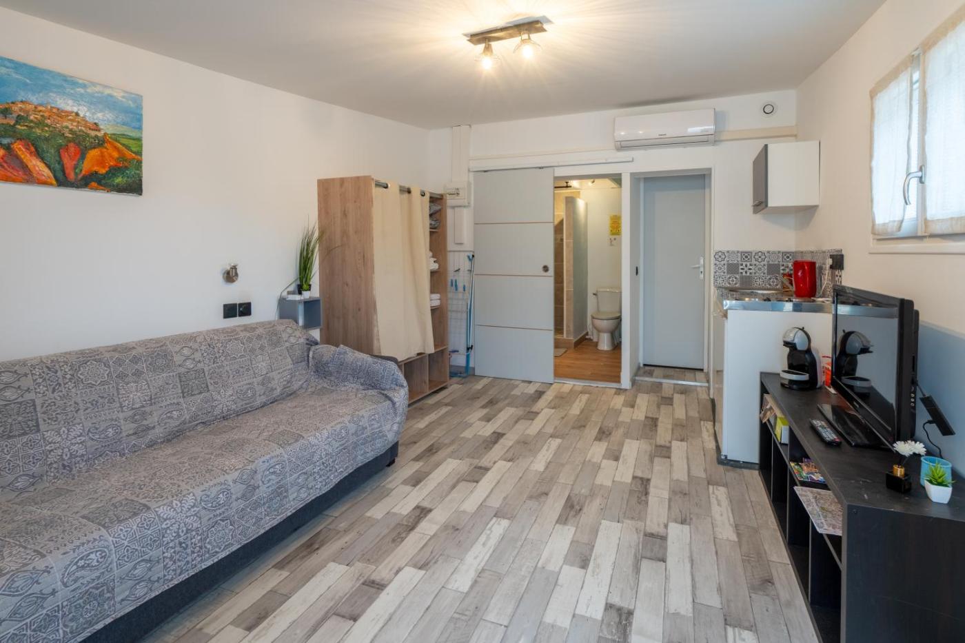Studio avec Terrasse. The studios kitchen, which features kitchenware and a microwave, is available for cooking and storing food. This air-conditioned studio has a private bathroom, a coffee machine, a barbecue as well as a patio. The unit has 1 bed.