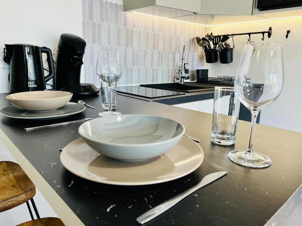 Appartement 1 Chambre. Boasting 1 bedroom, this apartment has 1 bathroom with a walk-in shower, a seating area and terraceyou can relax. The well-fitted kitchen has a stovetop, a refrigerator, kitchenware and a microwave. This apartment features a tea and coffee maker, a dining area, flat-screen TV, as well as chocolate for guests. The unit offers 1 bed.