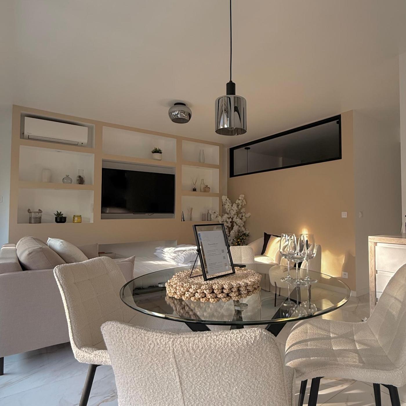 Appartement 1 Chambre. Boasting a private entrance, this air-conditioned apartment features 1 living room, 1 separate bedroom and 1 bathroom with a walk-in shower and a hairdryer. In the kitchen, guests will find a stovetop, a refrigerator, a dishwasher and kitchenware. Featuring a terrace with sea views, this apartment also features a washing machine and a flat-screen TV with streaming services. The unit has 2 beds.