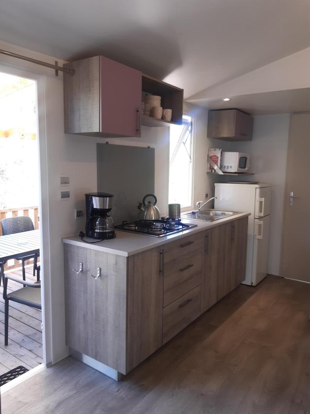 Mobile Home. Featuring a private entrance, this air-conditioned mobile home is comprised of 2 bedrooms and 1 bathroom with a shower. Guests will find a stovetop, a refrigerator, kitchenware and a microwave in the well-fitted kitchen. The mobile home also has a barbecue. The mobile home offers a tea and coffee maker, a wardrobe, a sofa as well as a terrace with garden views. The unit offers 3 beds.