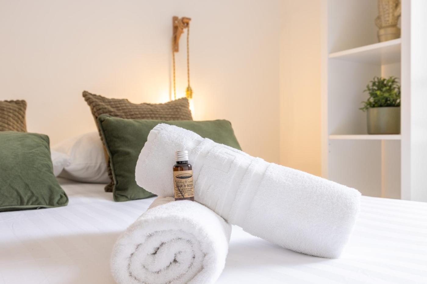 Cet appartement comporte 2 chambres, une cuisine entièrement équipée avec un réfrigérateur et un four, ainsi que 1 salle de bains avec une douche et une baignoire. Une télévision à écran plat est à disposition.