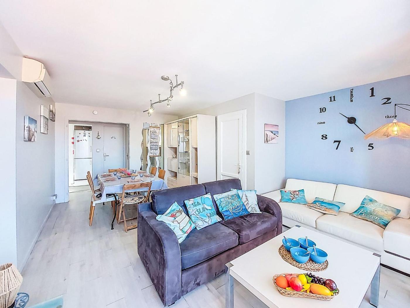 Cet appartement avec climatisation se compose de 2 chambres, dun salon, dune cuisine entièrement équipée avec un réfrigérateur et une machine à café, ainsi que de 1 salle de bains avec une douche. Une télévision est disponible.