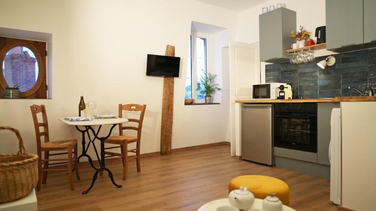 Cet appartement comporte 1 chambre, une télévision à écran plat, ainsi qu’une cuisine.