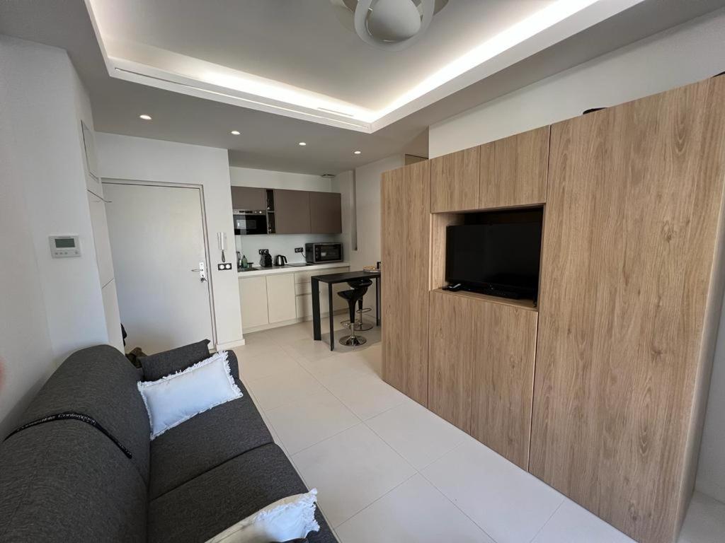 Cet appartement comporte 1 chambre, une télévision à écran plat, la climatisation et un salon.