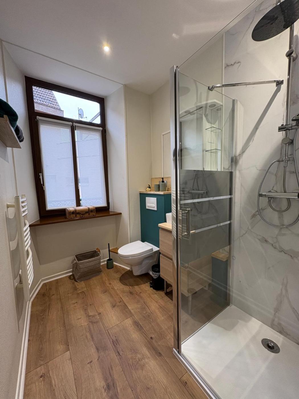 Appartement 1 Chambre. Boasting a private entrance, this apartment features 1 living room, 1 separate bedroom and 1 bathroom with a walk-in shower and a hairdryer. The well-equipped kitchen has a stovetop, a refrigerator, a dishwasher and kitchenware. The apartment features a washing machine, a tea and coffee maker, a seating area, a flat-screen TV with cable channels, as well as ancourtyard view. The unit has 2 beds.