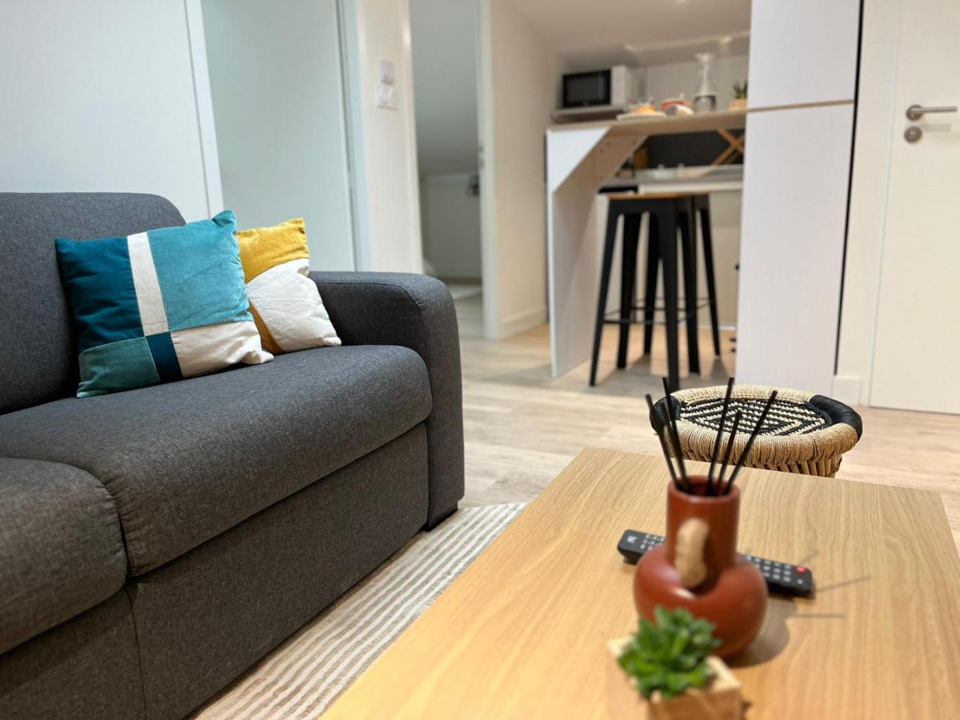 Appartement 1 Chambre. This apartment consists of 1 living room, 1 separate bedroom and 1 bathroom with a shower and a hairdryer. Guests can make meals in the kitchen that is equipped with a stovetop, a refrigerator, a dishwasher and kitchenware. The apartment provides a flat-screen TV, a tea and coffee maker, a dressing room, heating as well as a quiet street view. The unit offers 2 beds. ;