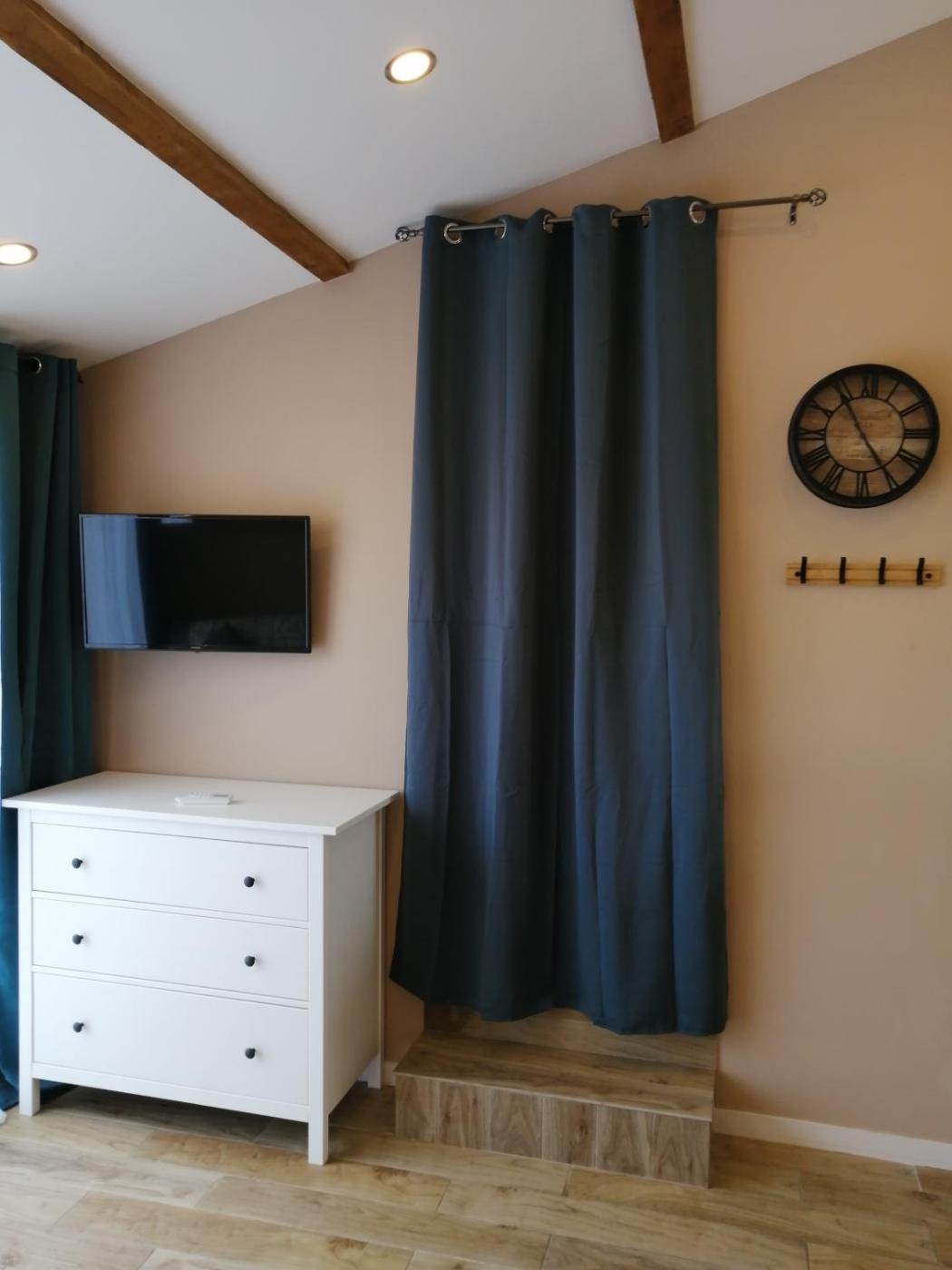 Studio avec Canapé-Lit. Guests will find a stovetop, a refrigerator, kitchenware and a microwave in the well-equipped kitchenette. The studio also comes with a barbecue. This air-conditioned studio is comprised of a flat-screen TV with streaming services, a private bathroom as well as a terrace with garden views. The unit has 1 bed.